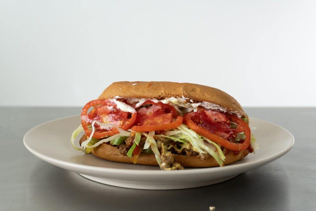 Flat-top chopped beef and onions, melted cheese, lettuce, tomato, and mayo on a hero. Late-night perfection at any hour.