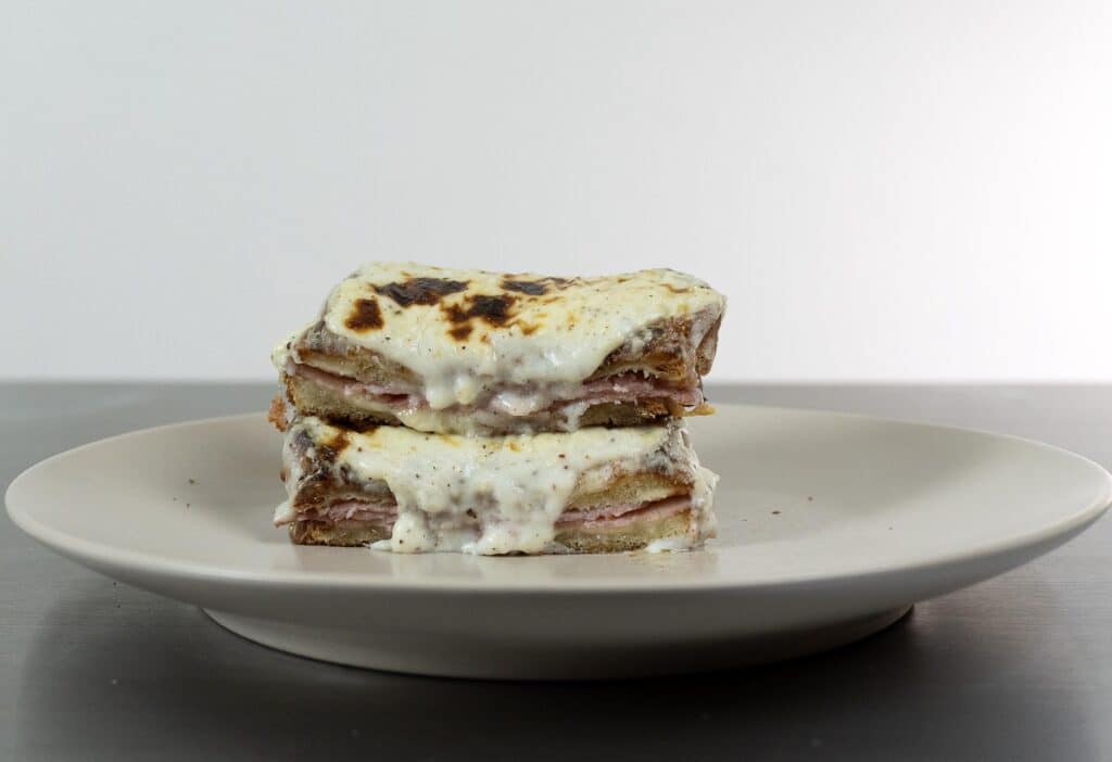 The Croque Monsieur recipe is one of the most iconic French sandwiches, made with ham, cheese, béchamel sauce, and bread.